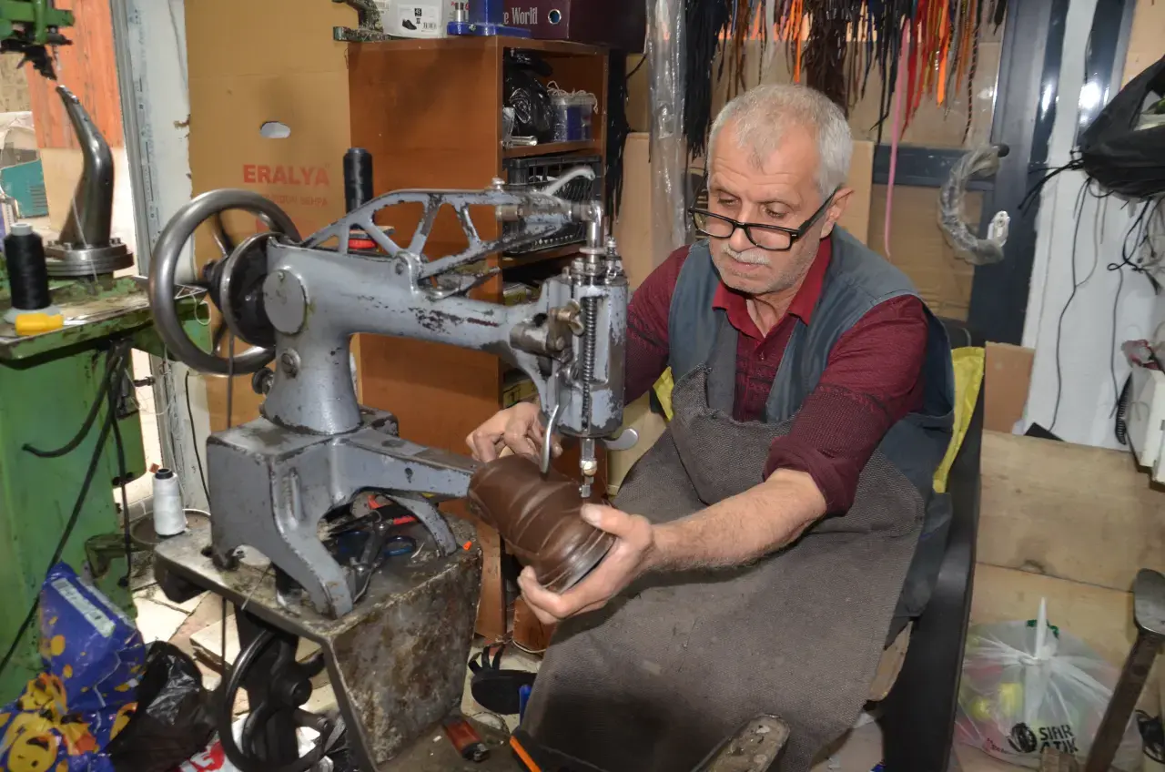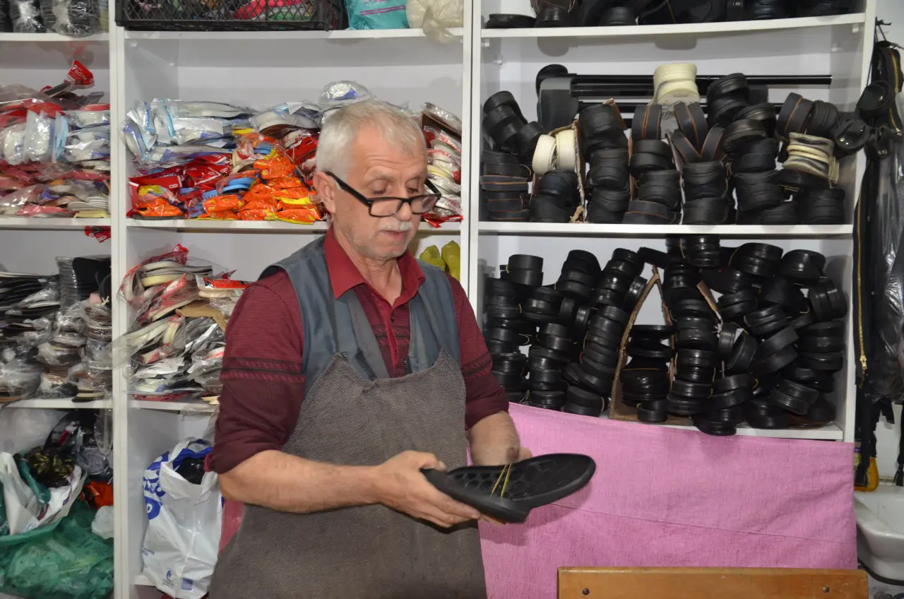 "Babamın yanında çıraklık yaparak öğrendim. Boyacılık da yaptım. 15 yaşından sonra işimi kurdum. Çırak bulamadığım için işi tek başıma sürdürüyorum. Artık bu işte kimse çalışmıyor. Gençlerin hepsi tembelleşmiş. Ben 15 yıl boyunca sokak başında makine olmadığı için ellerimle iğneyle tamir yapıyordum. Sonra makine aldım. Burada bir kulübe belediyeden almıştım. 30 sene kulübede kaldım."