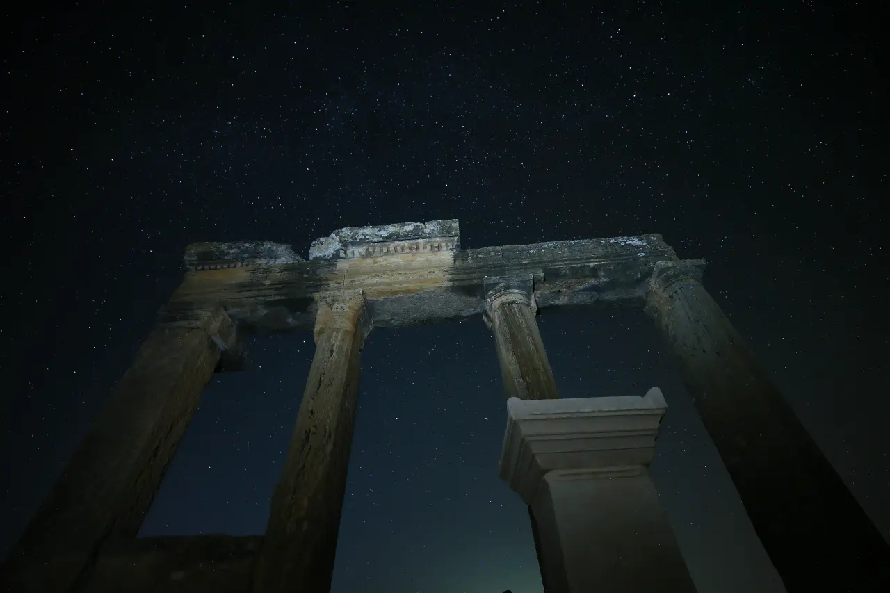 Blaundos Antik Kenti, gece gökyüzündeki yıldızlarla birleştiğinde eşsiz bir manzara sunuyor. Uzun pozlama tekniğiyle çekilen görüntüler, antik kentin tarihi dokusunu ve doğanın büyüleyici güzelliğini bir araya getirerek ziyaretçilere ve fotoğraf tutkunlarına görsel bir şölen yaşatıyor.