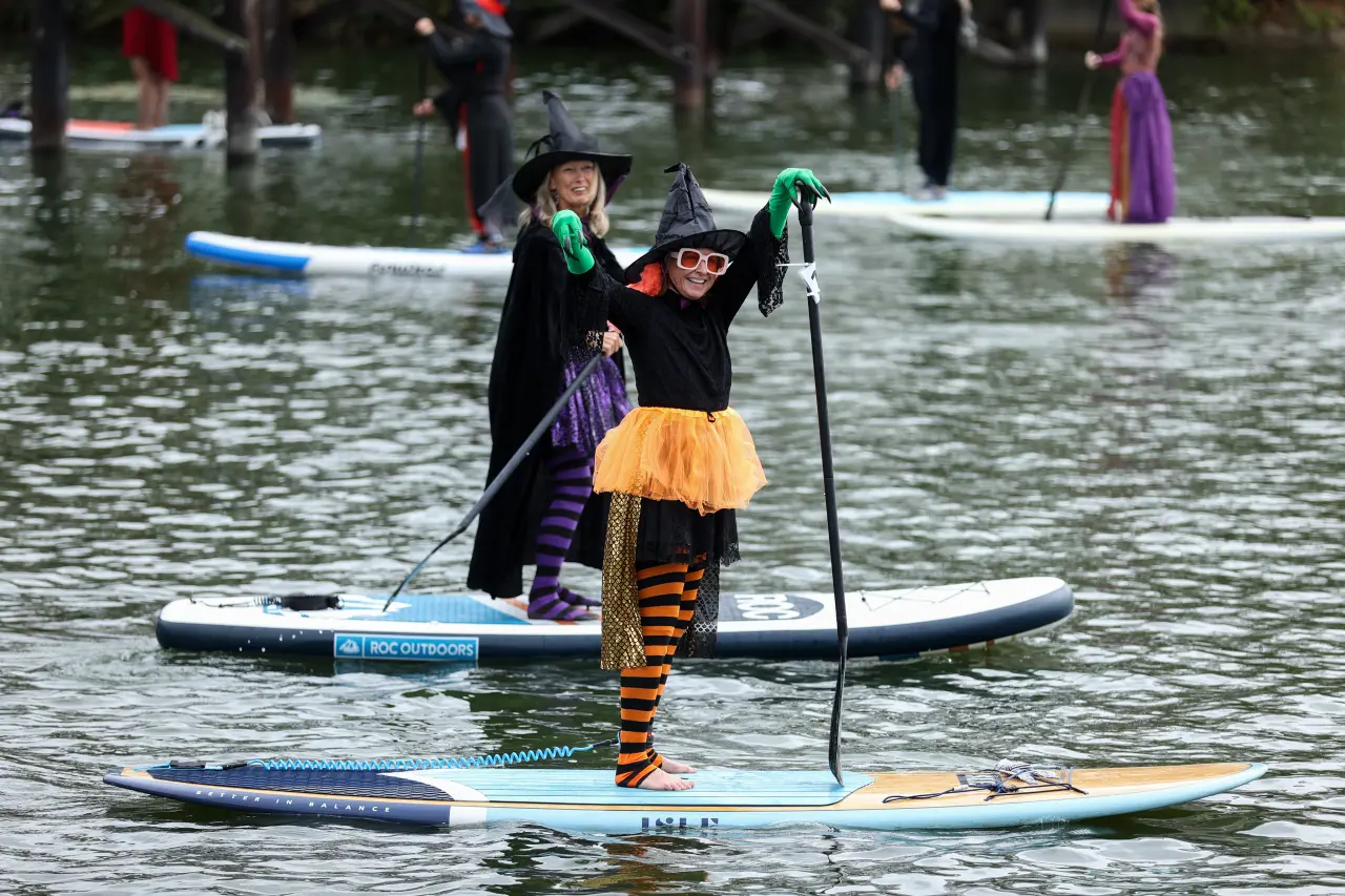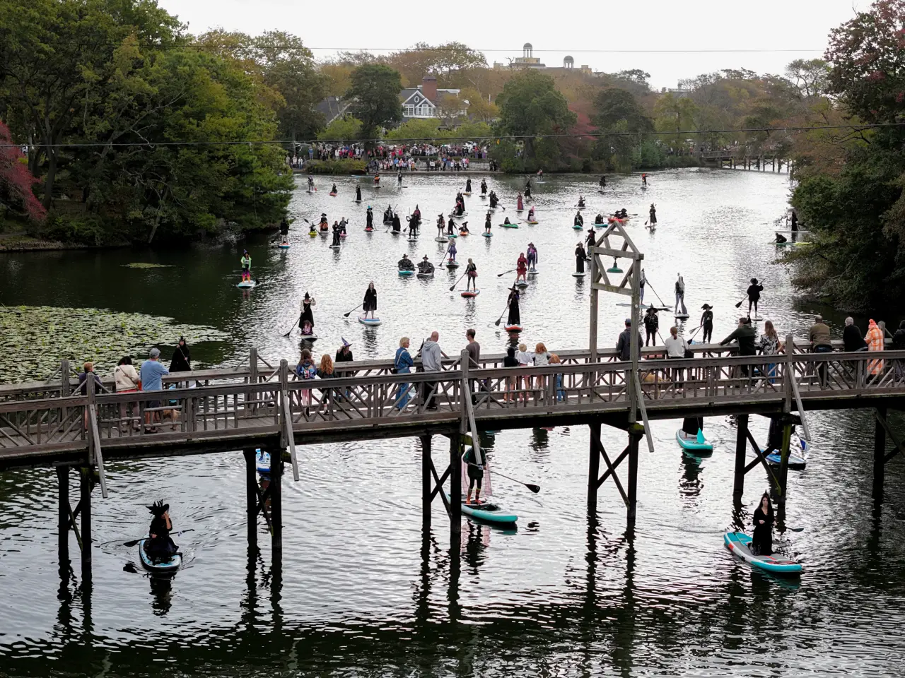 New Jersey Spring Lake’de Cadılar Bayramı Etkinliği: Cadı Kıyafetli Kürekçilik ve Paddleboard Şovu