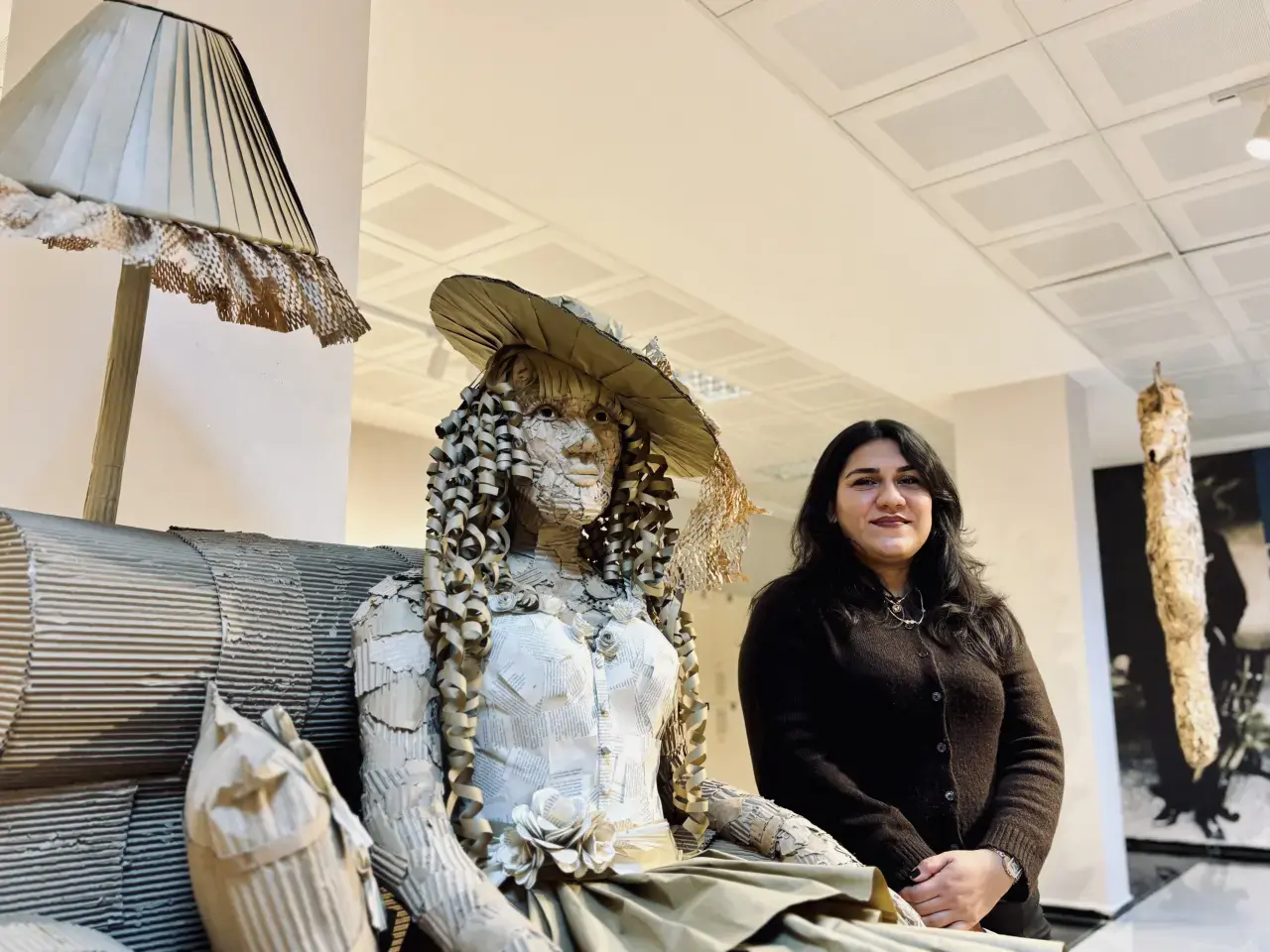 Resim Bölümü 4. sınıf öğrencisi Esra Nur İptaş, pet şişe, naylon poşet, tuvalet kağıdı rulosu, boş koli, kullanılmayan kağıt ve kitap gibi atıkları heykellerde değerlendirdiklerini anlattı.