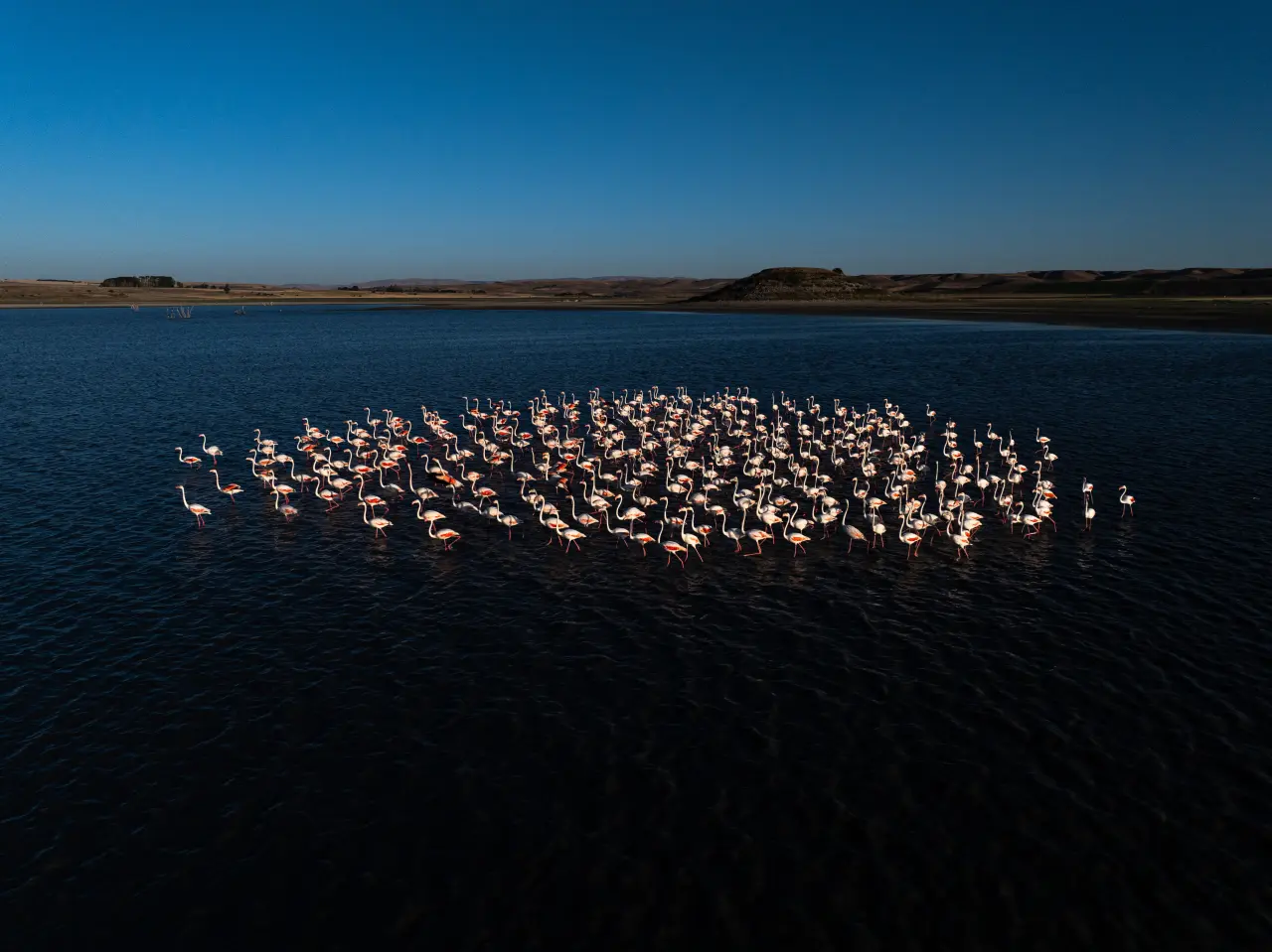 Yozgat’ın incisi Gelingüllü Barajı, flamingoların büyüleyici misafirliğiyle renkleniyor. Bu zarif kuşlar, barajın sakin sularına konarak doğada muhteşem bir tablo oluşturuyor. Göçmen flamingolar için dinlenme, beslenme ve üreme alanı sunan baraj, aynı zamanda tarımsal sulamayla bölge tarımına hayat veriyor.