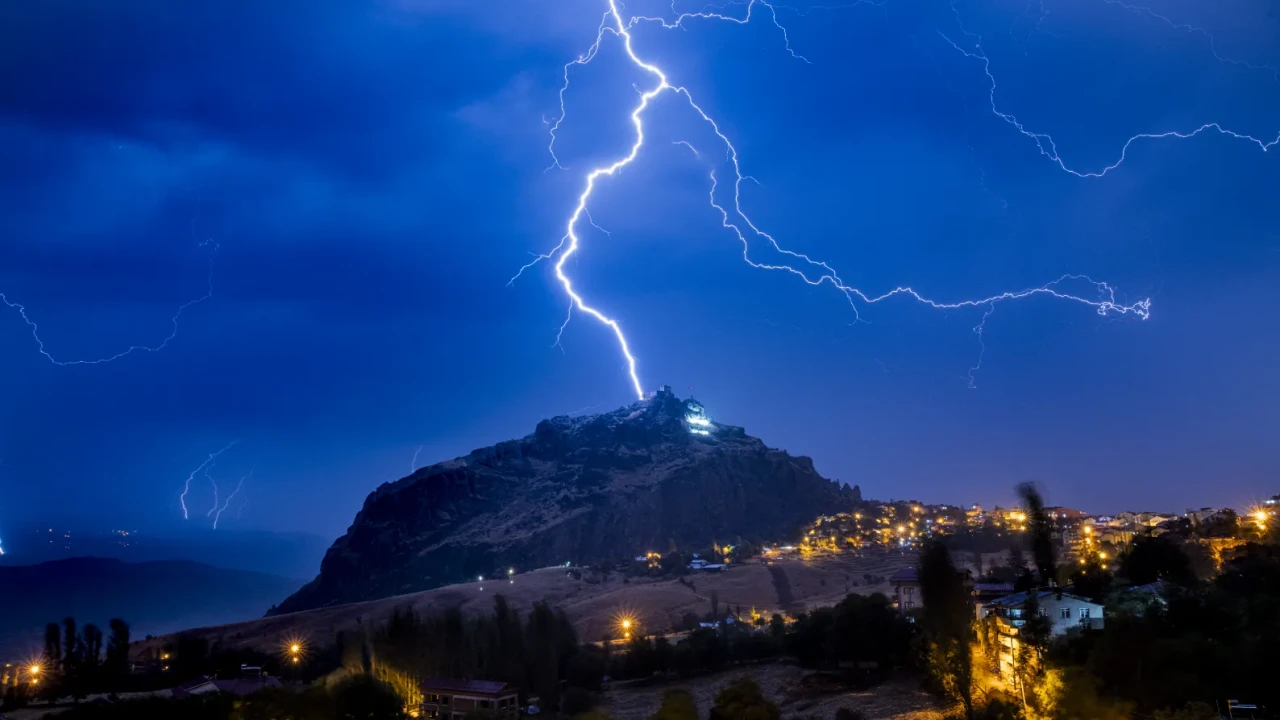 Giresun’un Şebinkarahisar ilçesinde akşam saatlerinde etkili olan yağmurla birlikte gökyüzü zaman zaman şimşeklerle aydınlandı. İlçenin bazı bölgelerinde gözlemlenen bu doğa olayı, görsel bir şölen oluşturdu.
