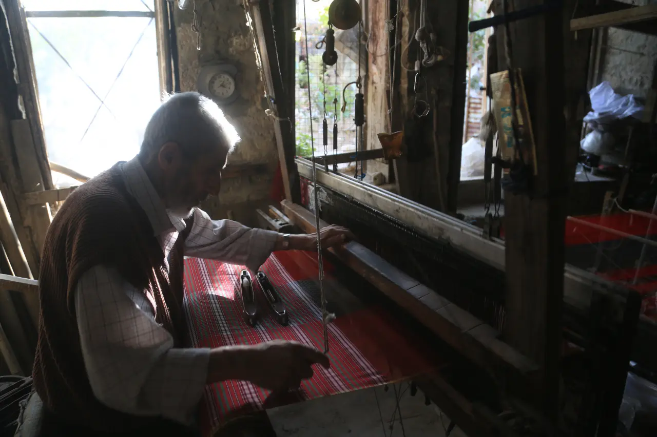 Suriye’nin kuzeyindeki Halep’te geleneksel el dokumacılığının son temsilcilerinden 80 yaşındaki Muhammed Ezrak, yok olmaya yüz tutan zanaatını asırlık tezgahında sürdürüyor.