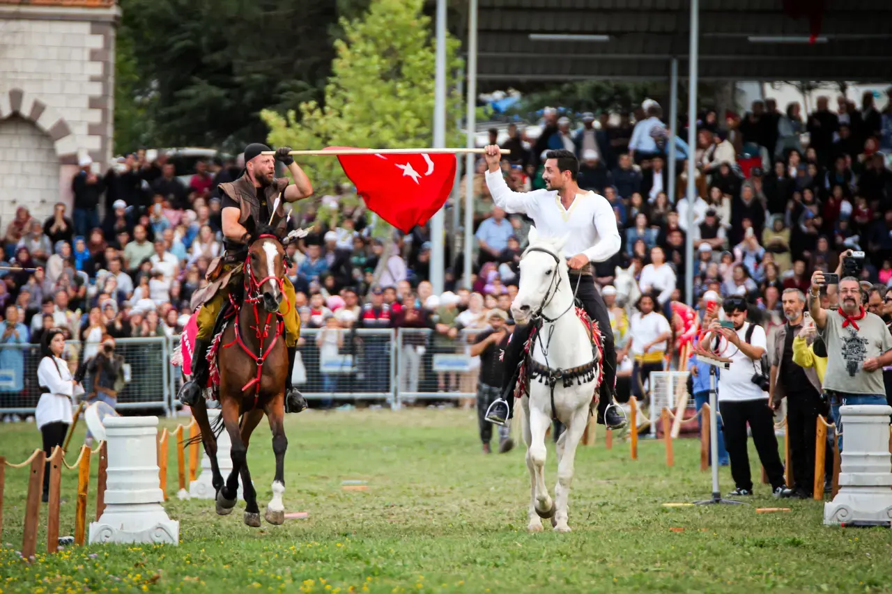 Etkinlikler kapsamında, mehteran takımı eşliğinde sembolik göç yürüyüşü gerçekleştirilirken, atlı okçuluk ve halk oyunları gösterileri de izleyicilerle buluştu.