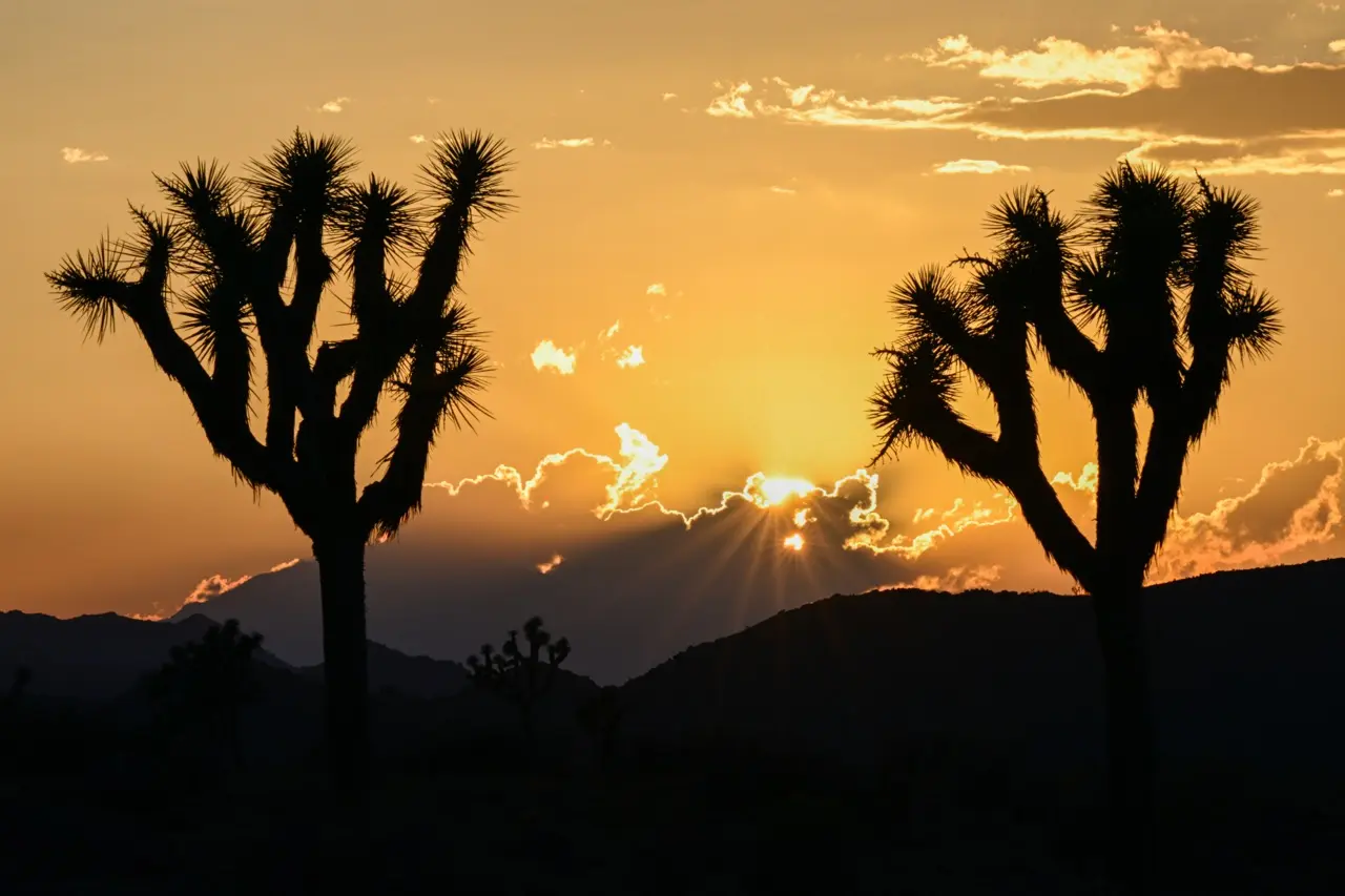 ABD’nin California eyaletinin güney kesiminde yer alan Joshua Tree Ulusal Parkı, etkileyici kaya oluşumları ve eşsiz çöl manzaralarıyla tanınıyor. Parkta, güneşin Joshua ağaçları ve dağların ardında batarken yarattığı görkemli manzara görüntülendi.