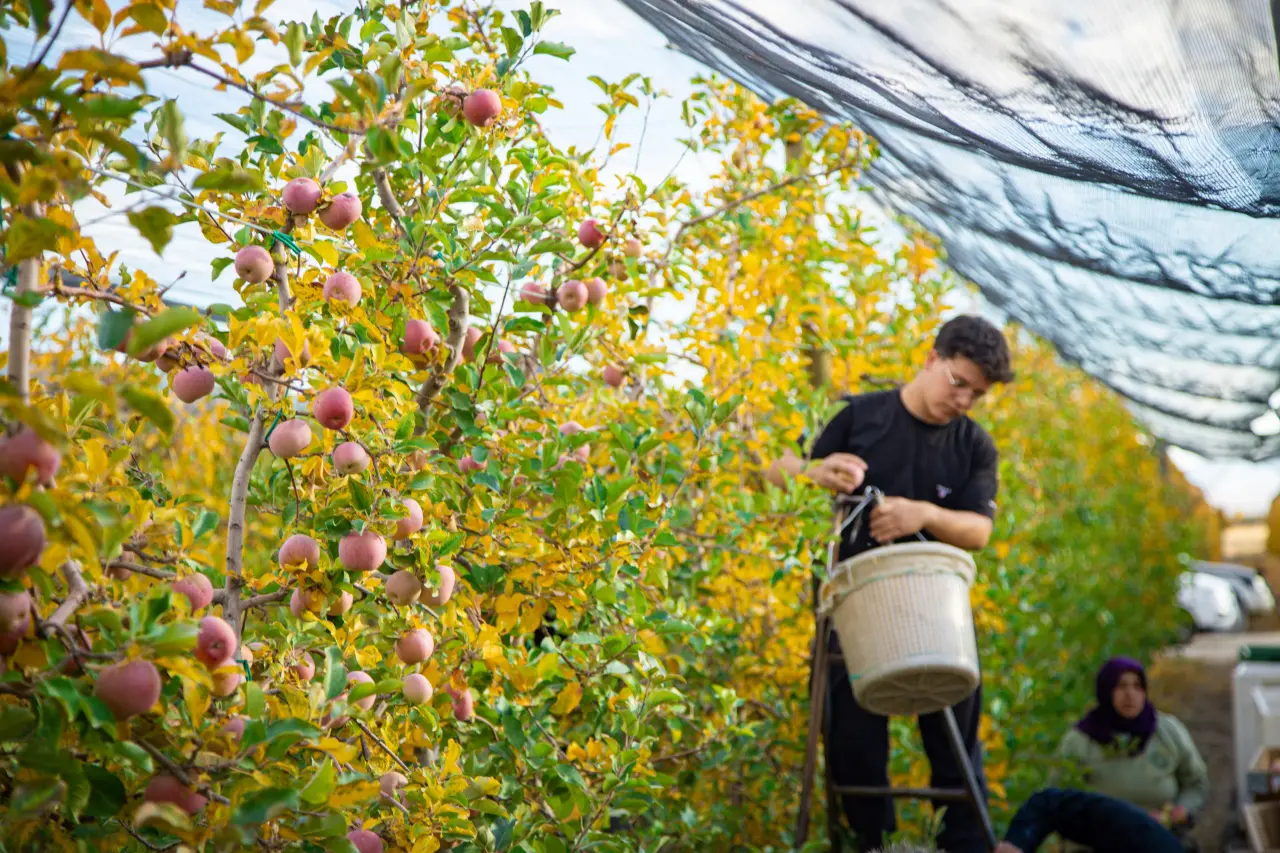 “Hasadın sonuna geldik, 3-4 günlük işimiz kaldı. Karaman’da genel olarak en çok ‘Starking’ ve ‘Golden’ öne çıkıyor. ‘Fuji’ ve benzeri ürünler biraz daha az oluyor. En zor toplanan elma çeşidimiz ‘Golden’, çok hassas. Daldan sökerken bile dikkatlice yolman gerekiyor. Parmak izi çok çabuk geçiyor. Elle hafif bastığın yerde iz kalıyor ve o çürüme çok çabuk başlıyor.” ifadelerini kullandı.