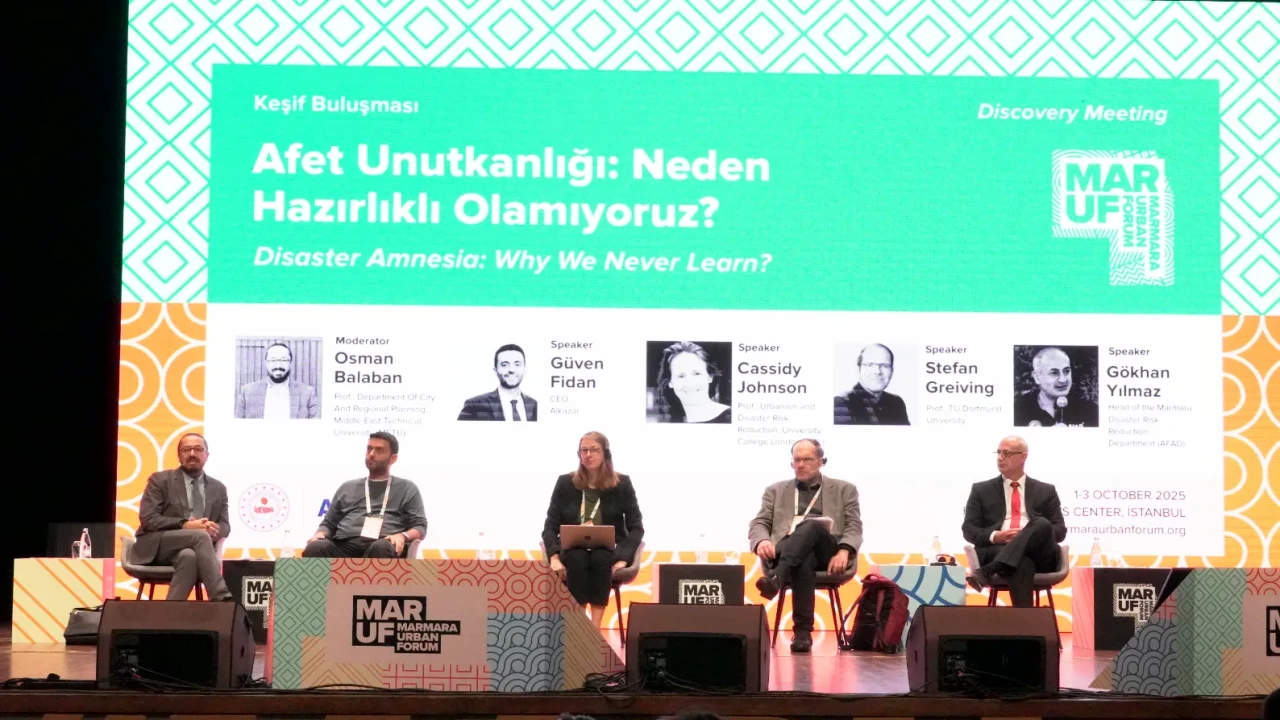 İstanbul - Marmara Belediyeler Birliği (MBB) tarafından “Çözüm Üreten Kentler” temasıyla iki yılda bir düzenlenen Marmara Uluslararası Kent Forumu (MARUF), ikinci gününde önemli bir oturuma ev sahipliği yaptı. “Afet Unutkanlığı: Neden Hazırlıklı Olamıyoruz?” başlıklı oturumda, afetlere hazırlıkta toplumsal farkındalık, kurumsal kapasite ve kentlerin dayanıklılığı masaya yatırıldı.