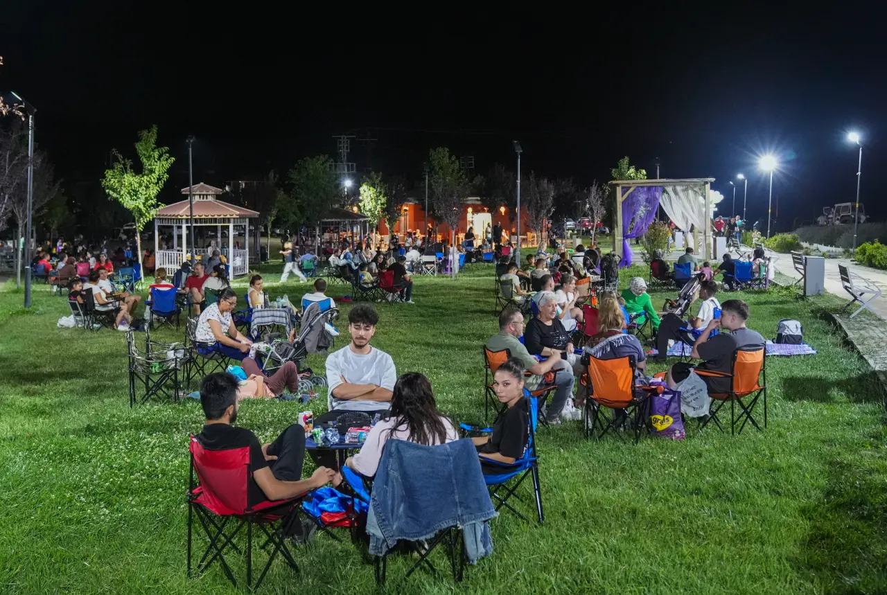 Kamp sandalyeleri ve örtülerle alana yerleşen katılımcılar, çardaklarda ve bahçede oturarak gökyüzünde süzülen yıldızları izledi.