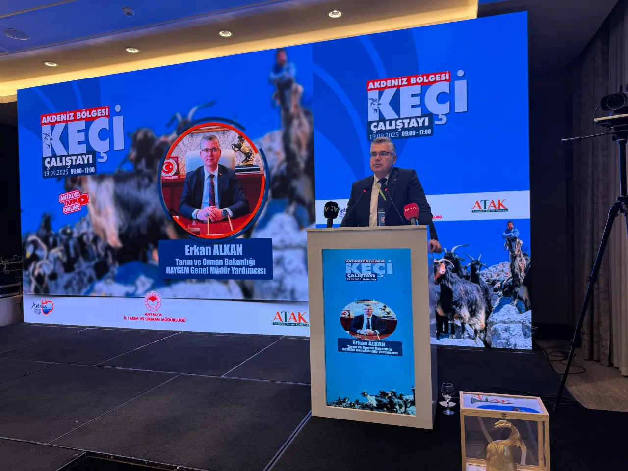 Antalya Tarım Konseyi (ATAK), Antalya Ticaret Borsası (ATB) ve Antalya İl Tarım ve Orman Müdürlüğü iş birliğiyle düzenlenen “Akdeniz Bölgesi Keçi Çalıştayı” Antalya’da bir otelde yapıldı. Tarım ve Orman Bakanlığı Hayvancılık Genel Müdür Yardımcısı Erkan Alkan, Türkiye’de 58 milyon küçükbaş hayvanın 11 milyon 191 bininin keçi olduğunu belirtti. “Bakanlık olarak küçükbaş hayvan yetiştiriciliğine çok büyük destek veriyoruz. 2024 yılında 150 baş oğlak için 123 bin lira verilirken, bu yıl 211 bin 500 liraya kadar destekleme veriyoruz. 2024’te 36 bin lira olan çoban desteğimiz şu an 81 bin liraya yükseldi” diyerek, Bakanlığın desteklerini vurguladı.