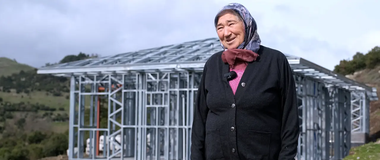 Fadime Kaplan da inşaatların hızlı ilerlediğini belirterek, “Bak senesine varmadan bitecek inşallah. Ne güzel çelik evlere sahip olacağız. İnsanın evi gibi olur mu?” ifadelerini kullandı.