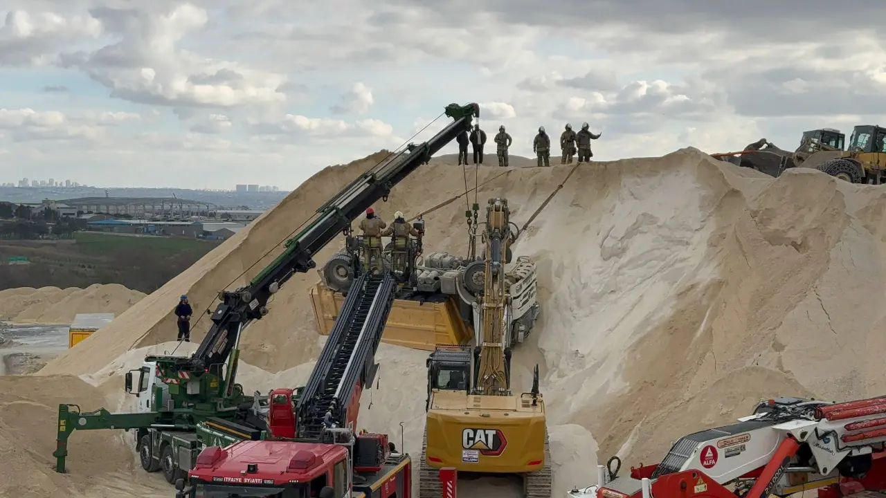 Hayatını kaybeden işçinin cenazesi, itfaiye ekiplerinin vinç yardımıyla yaptığı çalışmanın ardından sıkıştığı yerden çıkarılarak Adli Tıp Kurumu morguna götürüldü.