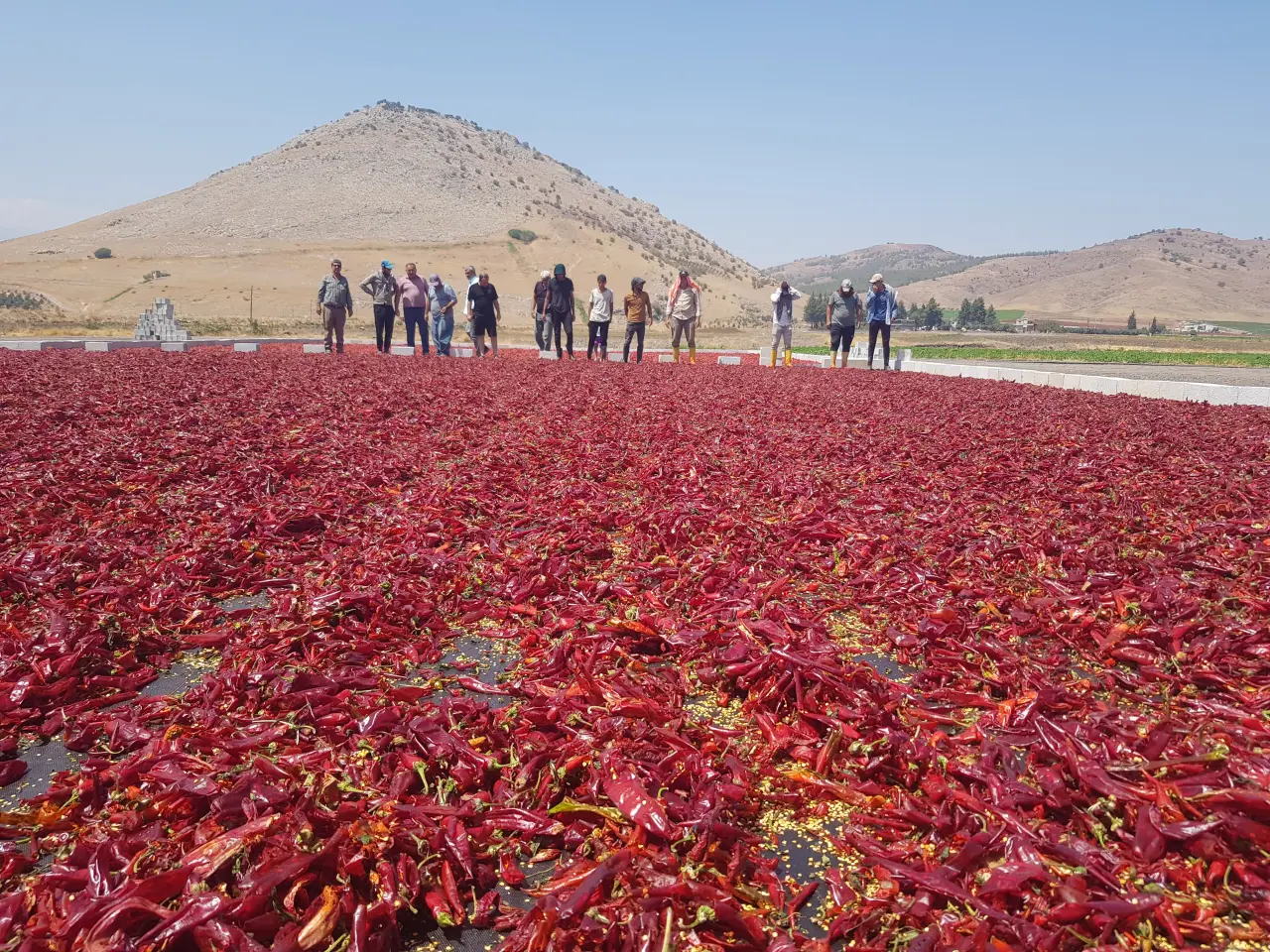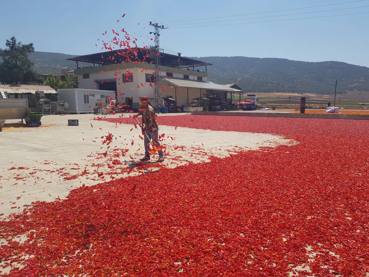 Toplanan biberler, sap ve çöplerinden ayrıldıktan sonra makinelerde çekiliyor ve güneşte kurutuluyor. Ardından ilçedeki 26 tesiste işlenen biberler, hem yurt içi hem de yurt dışı pazarlara ulaştırılıyor.