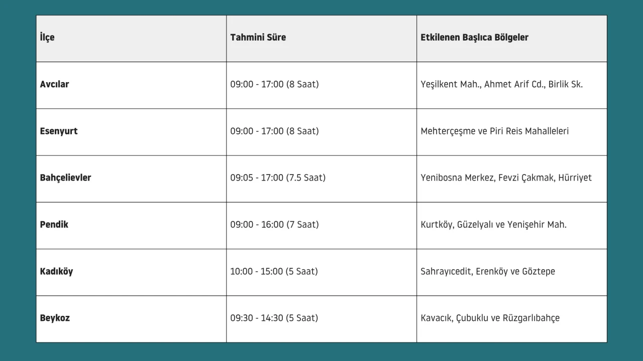 Avcılar: Yeşilkent Mahallesi ve çevresinde 8 saatlik kesinti (09:00 - 17:00).