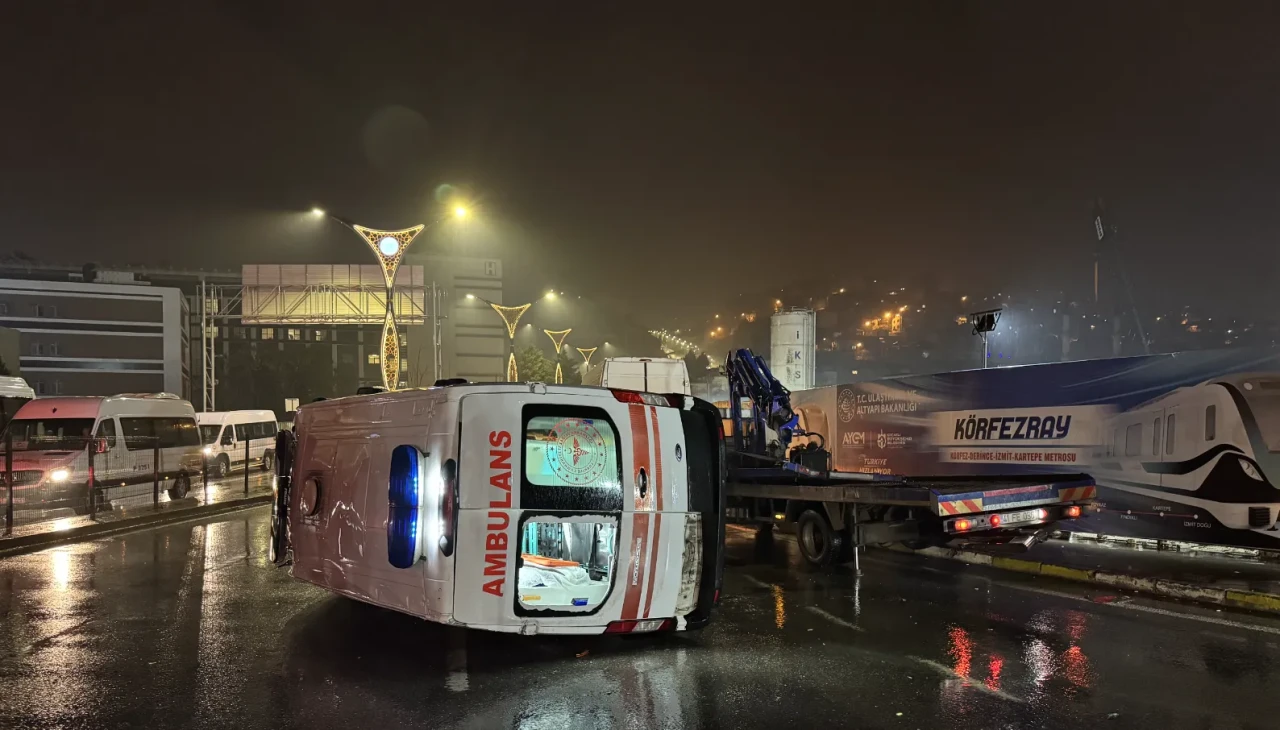 Kartepe’den Kocaeli Devlet Hastanesi’ne hasta nakli yapan 41 AGP 315 plakalı ambulans ile 16 AP 107 plakalı minibüs kavşakta çarpıştı. Ambulans devrildi.